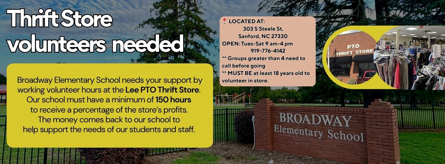 Broadway Elementary School needs your support by working volunteer hours at the Lee PTO Thrift Store.